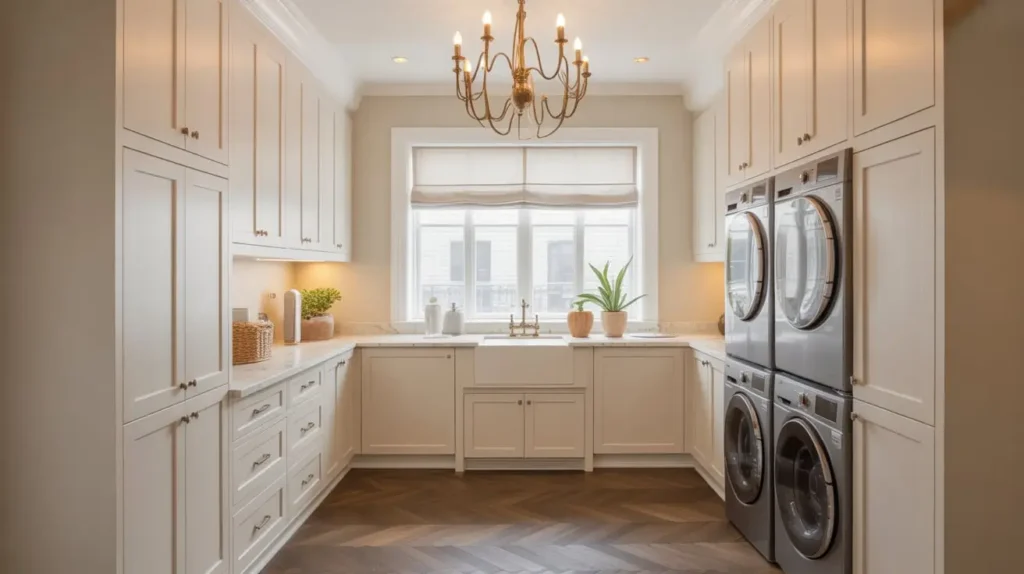 Last but certainly not least, if you want to elevate your laundry room floor from just a surface to a true design feature, consider a herringbone pattern. This classic layout, where rectangular planks or tiles are laid in a zigzag pattern, instantly adds a sense of luxury, movement, and custom detail.