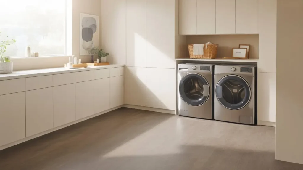 If your laundry room is in a dark basement or a windowless closet, a light-colored floor is your best friend. It will bounce light around the room, making it feel brighter, cleaner, and more spacious.