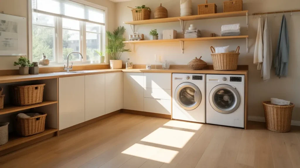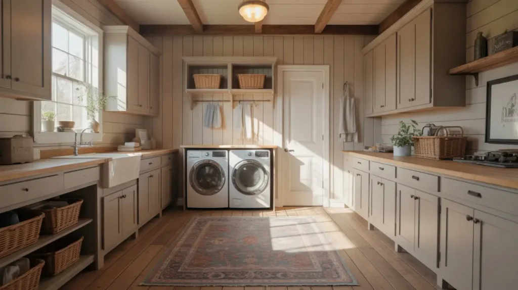To really sell the rustic look, go for planks with a bit of texture, a matte finish, and some color variation. Think reclaimed barn wood or a hand-scraped oak look. Pair it with shiplap walls, some open wood shelving, and a few wire baskets, and you’ll have a laundry room Joanna Gaines would be proud of.