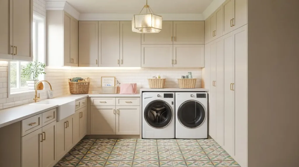 - Continuity: If your laundry room is in a hallway or nook, continuing the same patterned tile from the hall into the laundry space can create a seamless flow and make the area feel larger.