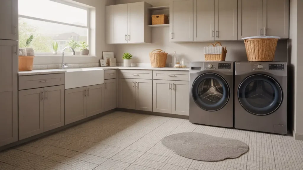 - Sophisticated Vibe: Grey floors feel calm and collected. They can make a utility space feel more like a designed part of your home.