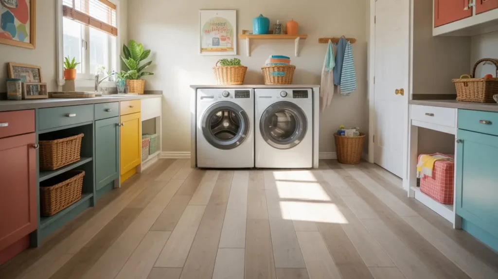 For my own laundry room, I chose a light oak LVP, and it completely warmed up the space. It’s been three years, and it still looks brand new despite a minor washing machine overflow incident. Total lifesaver.