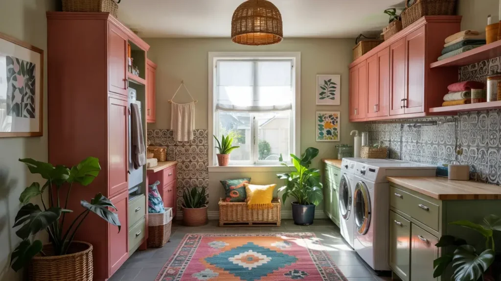 Bold color choices transform boring utility spaces into rooms you actually enjoy being in:
