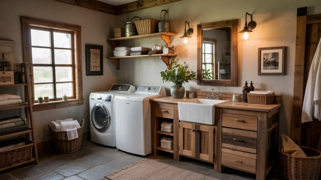 Want to bring a touch of warmth and rustic charm to your laundry room? A sink set into a reclaimed wood vanity is a stunning way to do it. The character and history of the old wood provide a beautiful contrast to the clean, functional purpose of a laundry room.