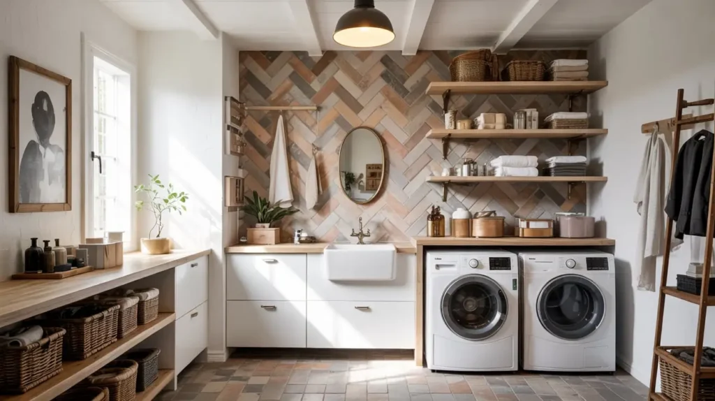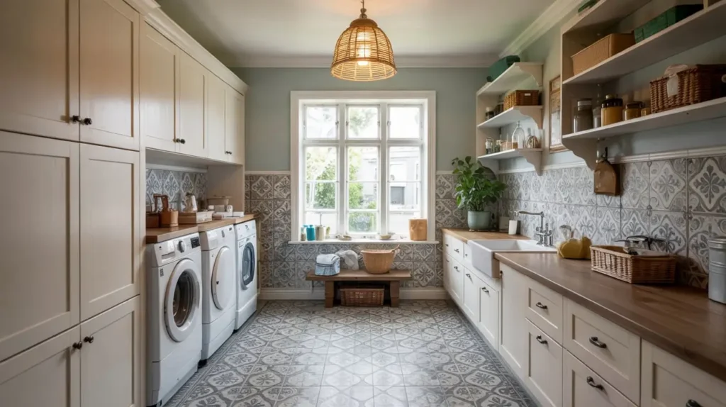If your laundry room is a sea of white or neutral—white washer, white dryer, white walls—a patterned floor is your secret weapon. It instantly injects personality and makes the room feel custom-designed. Ever walked into a room and just thought, “Wow, someone with great taste lives here”? That’s the power of a patterned tile.
