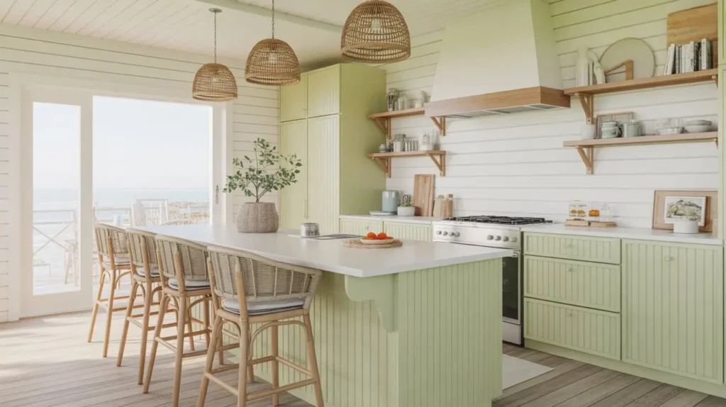 3. Soft Green Coastal Farmhouse Kitchen