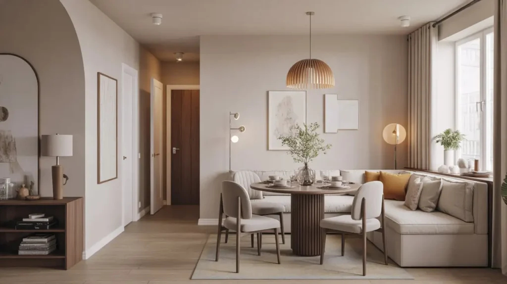 A corner dining setup can actually be super cozy and functional. Position a round or square table in a corner near your living area, add a bench along one or two walls, and throw in some comfy cushions. Boom—you’ve got a breakfast nook vibe that maximizes your space.