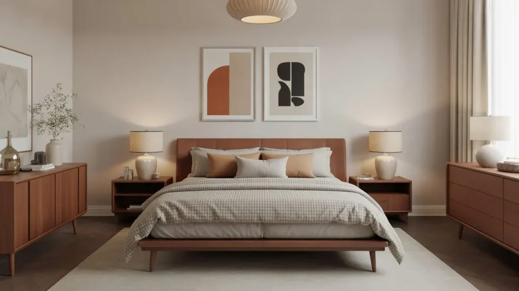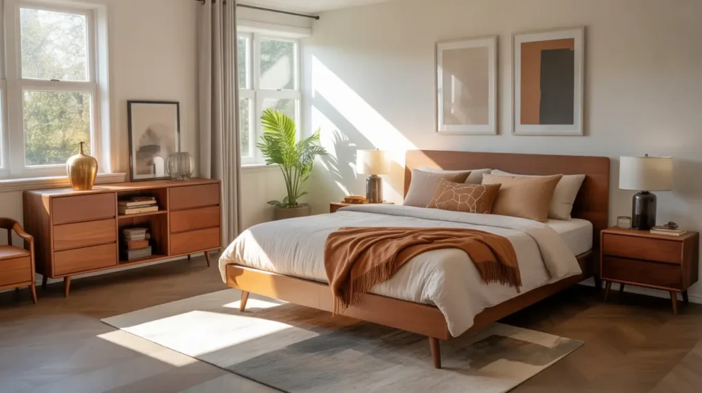 Warm Wood Accents for Mid Century Bedrooms