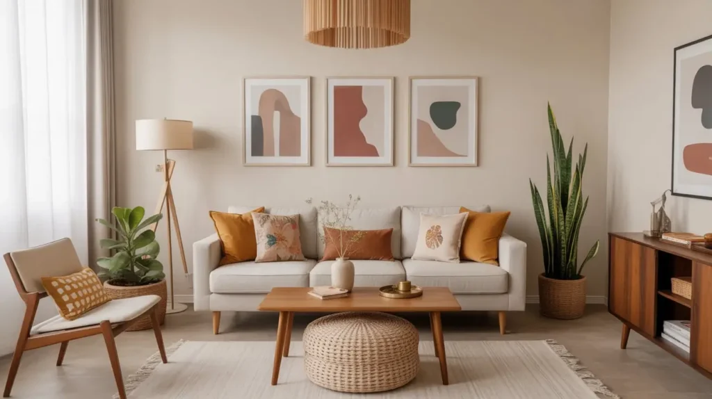 Following this structure ensures the room feels cohesive. Your MCM colors become deliberate, exciting highlights against a relaxed, earthy Boho backdrop. It’s intentional, not accidental.