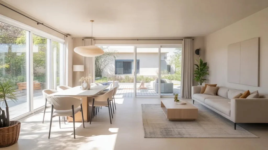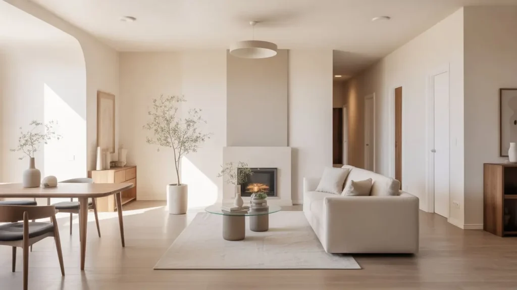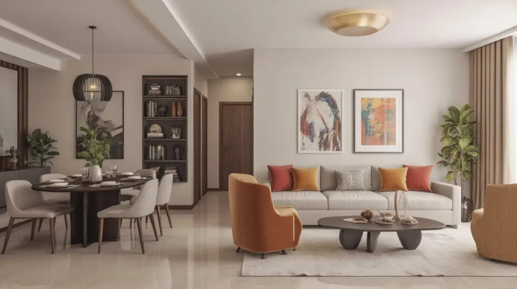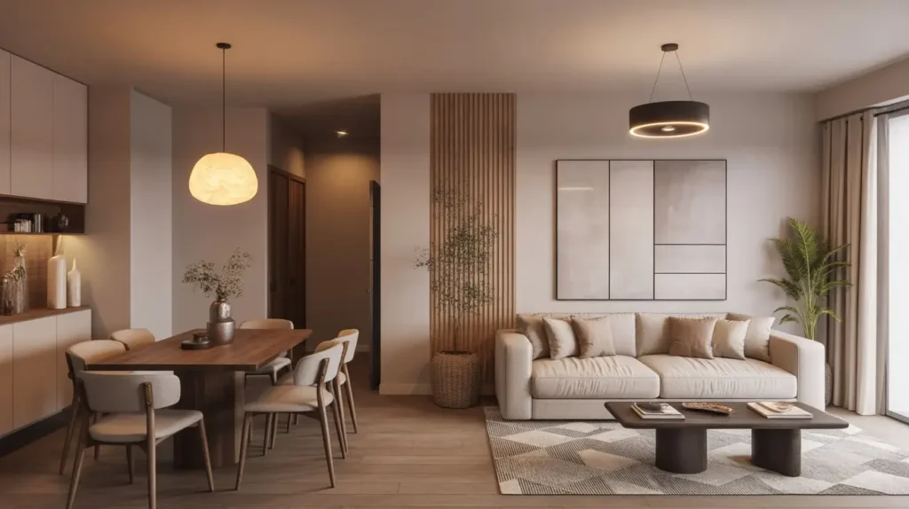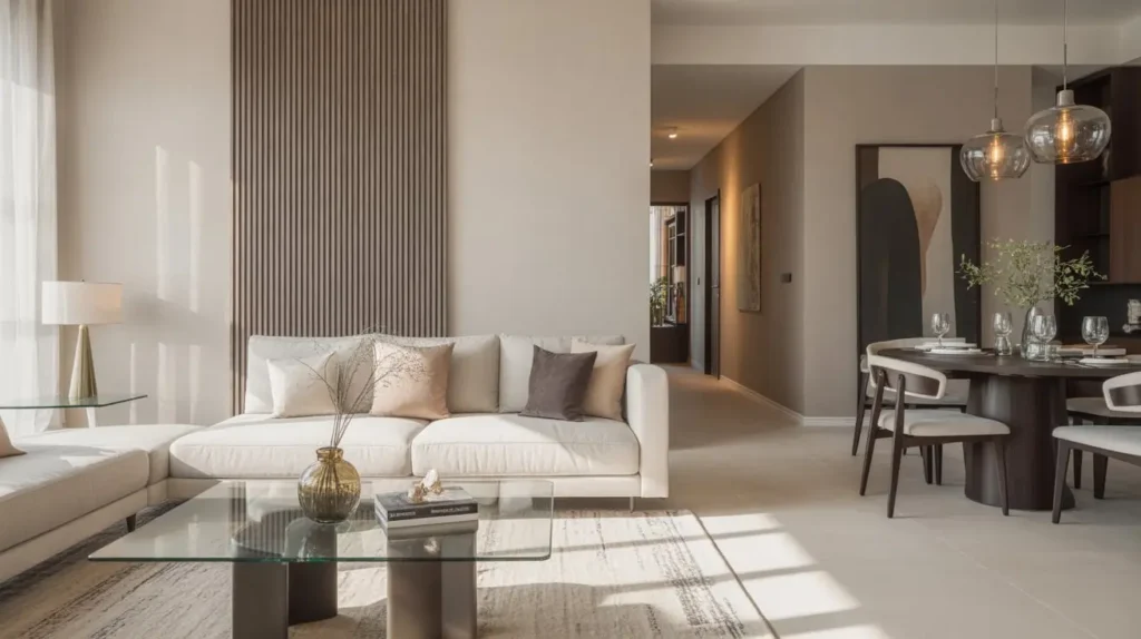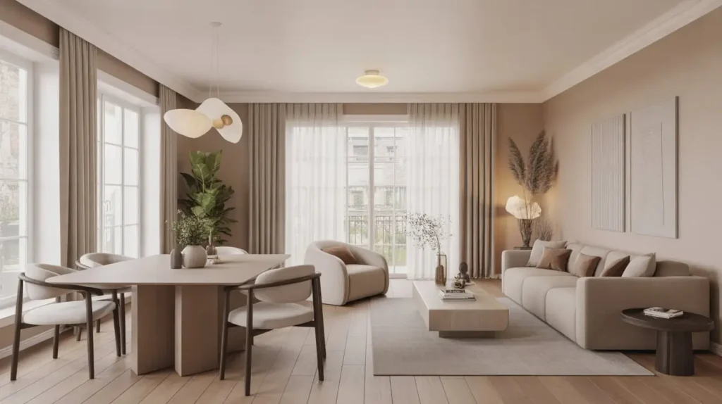4. Neutral Toned Modern Living-Dining Setup