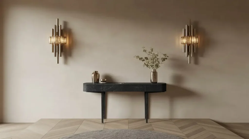 Why sconces instead of a table lamp? A few reasons. First, they free up the entire surface of your console table. This is huge in a small space where every square inch counts. You get light without sacrificing your spot for keys, a vase, or a piece of decor.