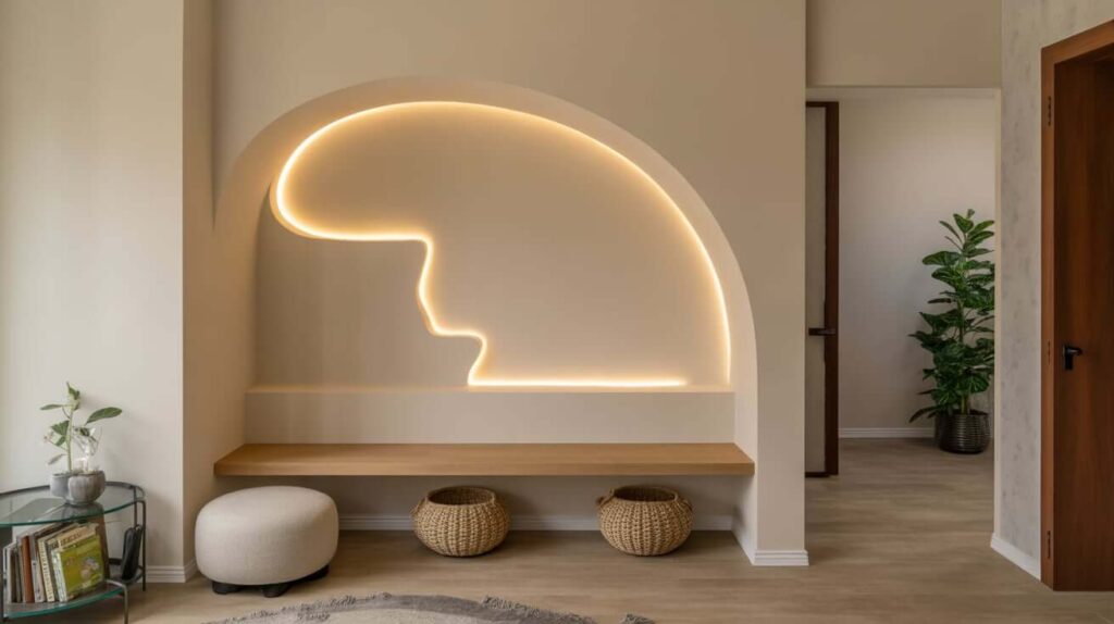 Imagine a small, recessed box in the wall, beautifully lit from within by a hidden LED strip. It’s the perfect spot to display a single, stunning vase, a small sculpture, or a piece of treasured pottery. It turns a dead space into a dramatic, gallery-like feature.