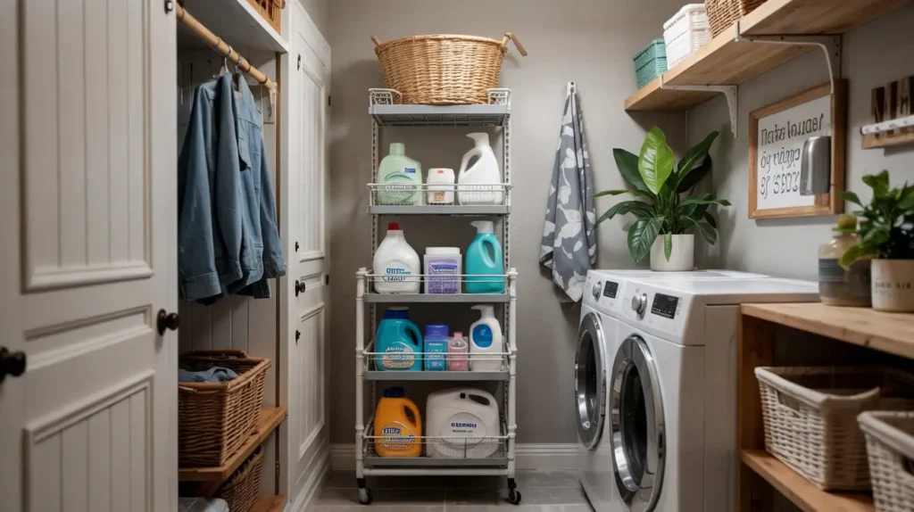 What about that awkward, dusty gap between your washer and dryer? Or between a machine and the wall? It’s a magnet for lint, lost socks, and despair. Enter the slim rolling cart. This is one of my favorite little laundry room hacks because it’s so simple and so effective.