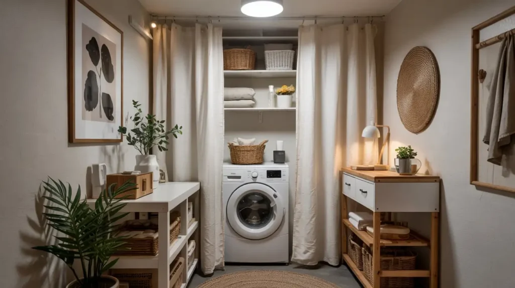 It’s incredibly affordable, requires no tools, and is perfect for renters. It’s a simple and elegant solution for an exposed laundry area. The only quirk is that it’s not soundproof. You’ll still hear the machines running, but at least you won’t have to look at them. It’s a classic case of “out of sight, out of mind.”