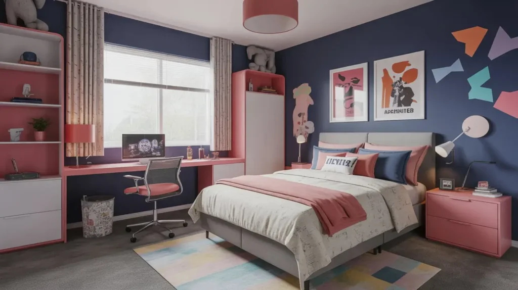 Navy works for both teen boys and girls, which makes it a practical choice for shared rooms or spaces that might change occupants. Pair navy with their current favorite accent color—whether that’s yellow, coral, or silver—for personalization that’s easy to update.
