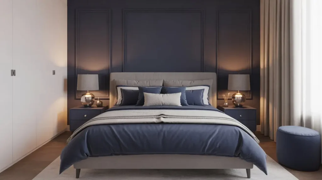 Designing a bedroom that works for two people with potentially different tastes presents unique challenges. Navy blue actually makes an excellent compromise color—it’s sophisticated enough for one partner and warm enough for the other.