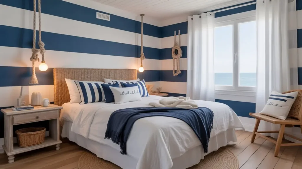 6. Navy Blue and White Nautical Bedroom