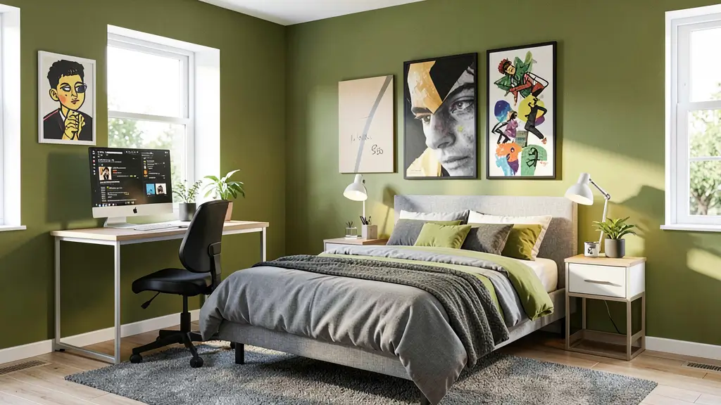 Teenagers want spaces that feel mature but still reflect their personality. Olive green is perfect for this because it’s sophisticated without being boring.