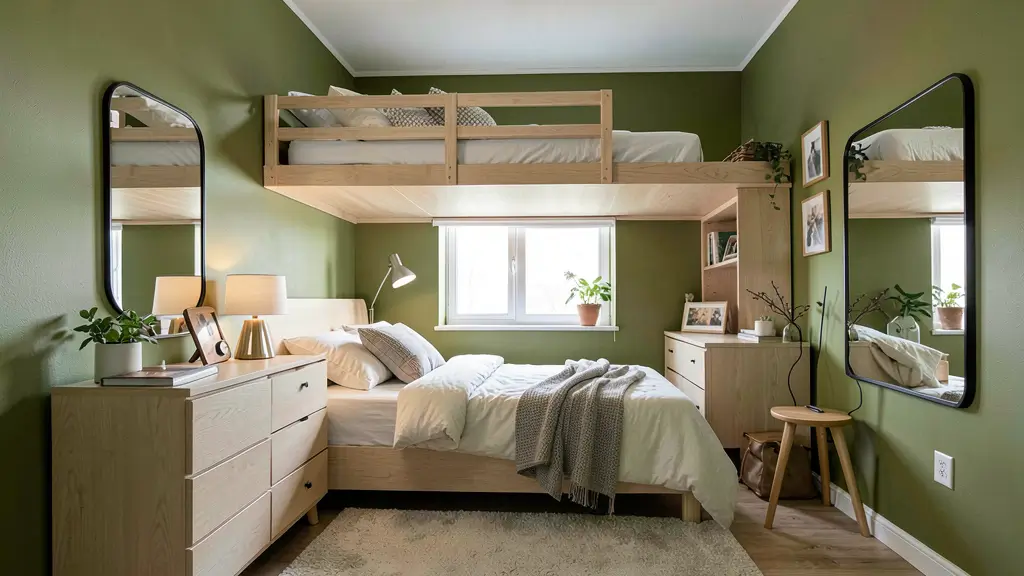 Small bedrooms need smart solutions, and olive green can actually help make your space feel larger when used correctly.