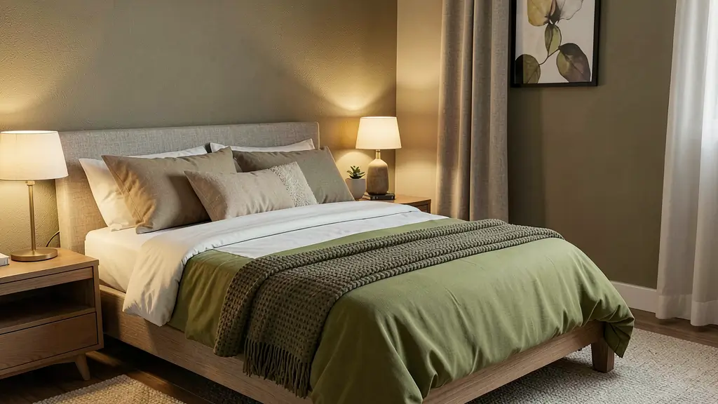 Sometimes the easiest way to incorporate olive green is through your bedding choices. This approach lets you test the color without major commitment.
