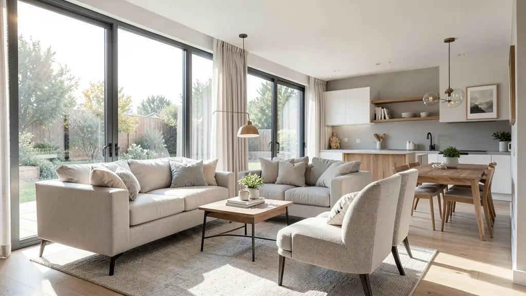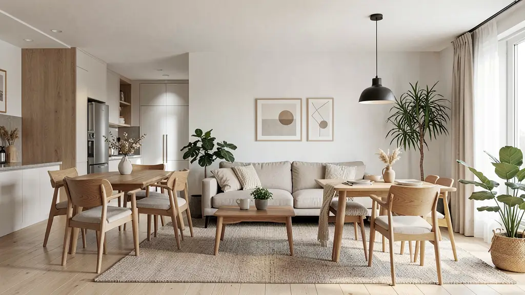 Let’s start with the most universally appealing approach: the cozy neutral palette. This style works beautifully in open concept spaces because neutral tones create visual continuity between your living and dining areas without making the space feel monotonous.