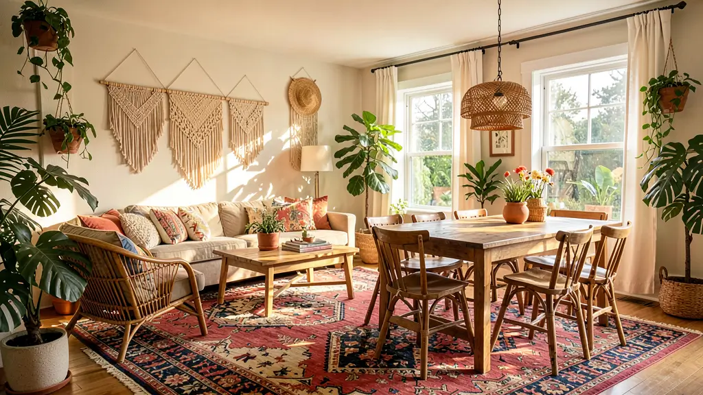 Boho open concepts succeed because they embrace layers and personality over rigid rules. Your dining chairs don’t need to match—in fact, they probably shouldn’t. Your rug might be Moroccan while your coffee table is mid-century modern while your dining table is reclaimed wood. And somehow, it all belongs together.