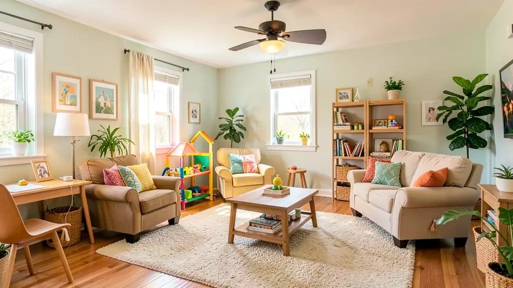 - Flexible seating options like poufs or extra chairs
