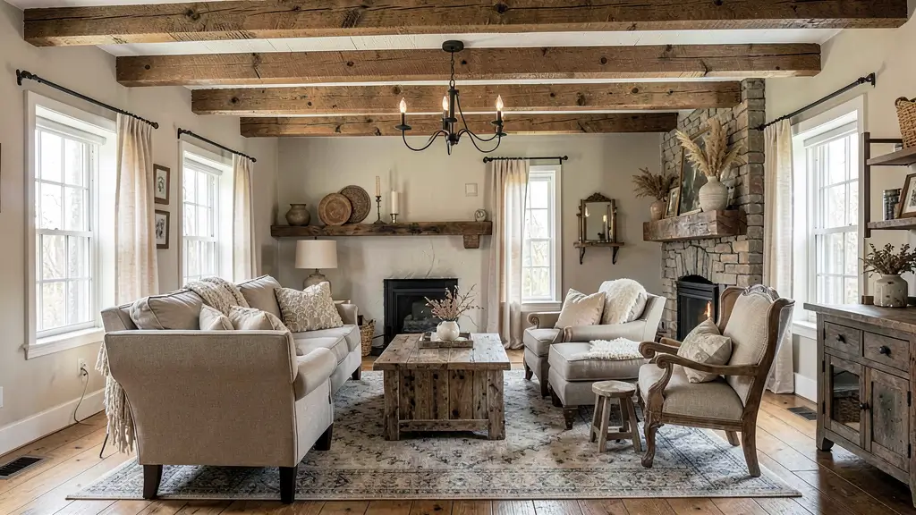 This style works phenomenally well in open floor plans because the natural materials and textures create visual interest without overwhelming the space. Raw wood beams, exposed brick, and weathered finishes bring character that modern minimalism simply can’t replicate.