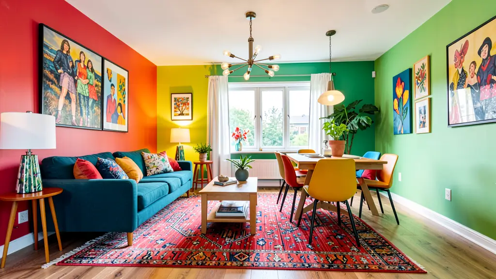 - Use bold color in moderation—accent walls, furniture pieces, or large artwork