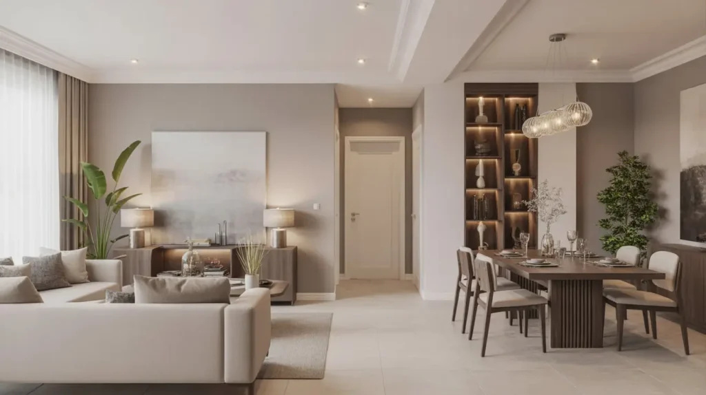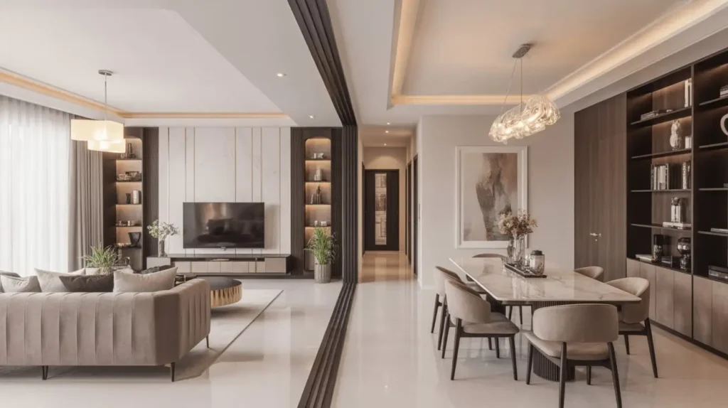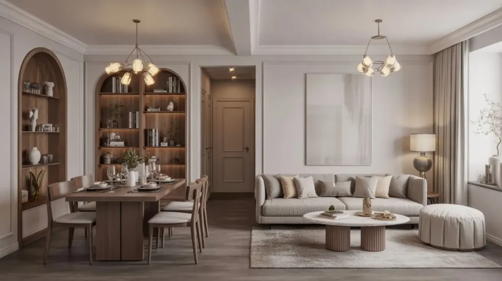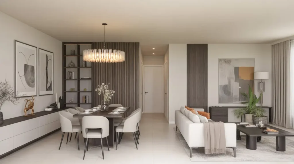- Integrated Appliances and Hardware: In the dining or kitchen-adjacent area, go for handle-less cabinets (push-to-open is your friend) and integrated appliances that sit flush with your cabinetry. The fewer visual interruptions, the more seamless and minimalist the space will feel.
