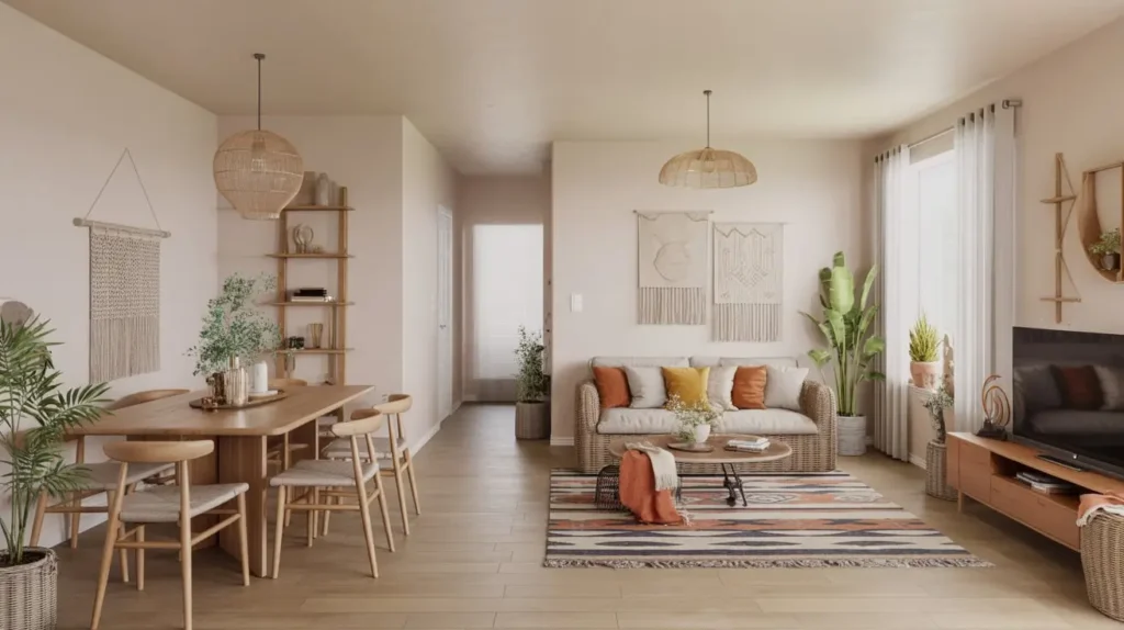For the free-spirited, the well-traveled, and those who believe “more is more,” the boho (bohemian) style is a perfect fit for an open concept. This look is all about personal expression, collected treasures, and a relaxed, lived-in vibe. There are no strict rules, only a general feeling of warmth, creativity, and comfort.