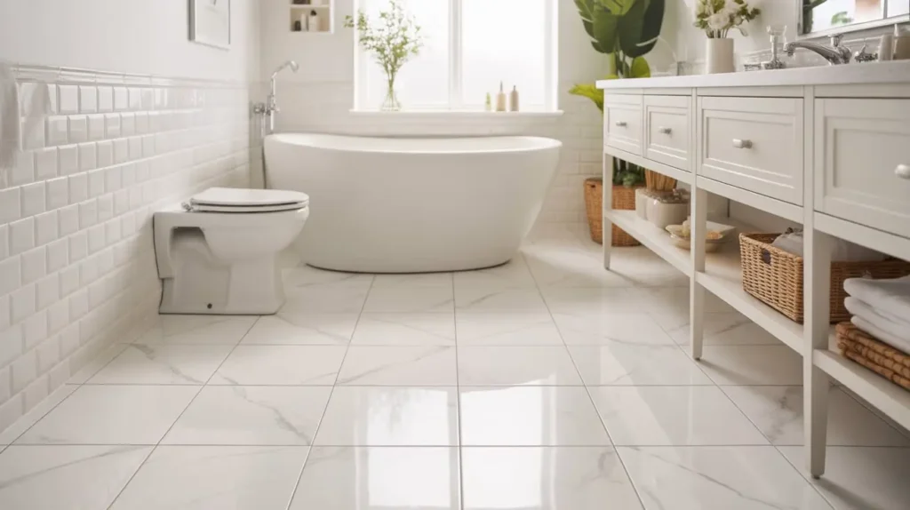 I find this look to be the perfect blend of classic and contemporary. It’s a timeless choice that won’t feel dated in five years. You can pair a white marble-look floor with literally any color scheme, from moody blacks and greens to soft pastels. It’s the ultimate design chameleon, providing a sophisticated canvas for the rest of your bathroom.