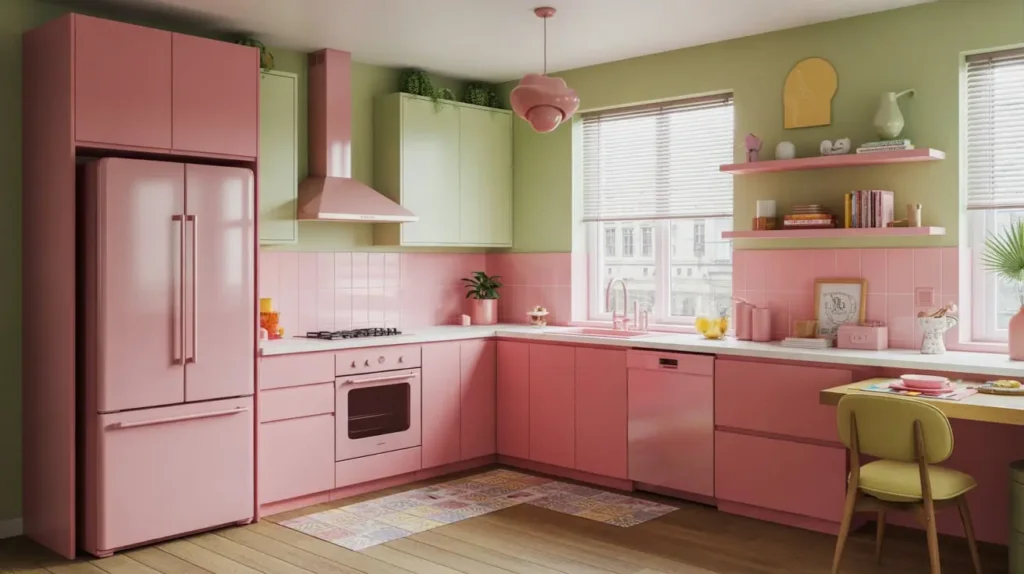 9. Playful Barbie Pink Meets Sage Green Kitchen