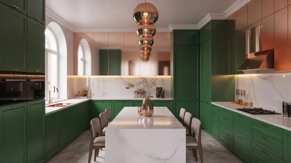 7. Bold Emerald and Rose Gold Kitchen Palette
