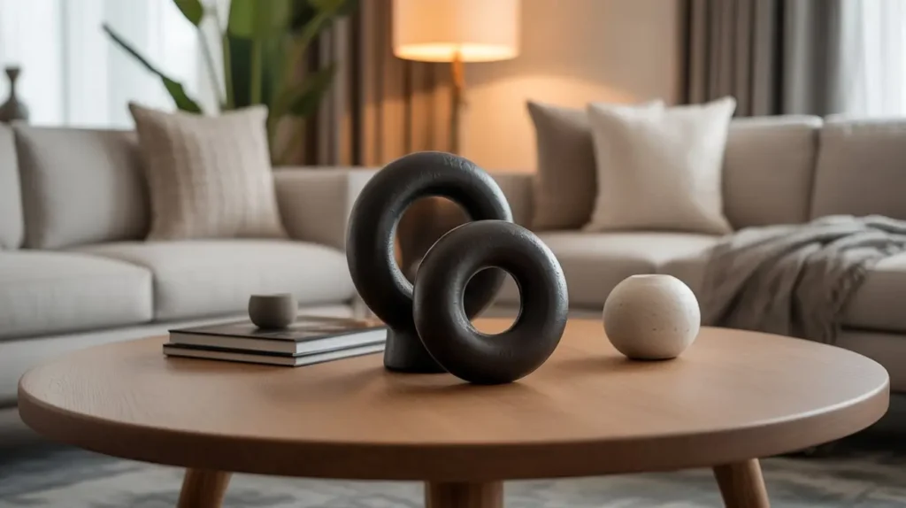 A round coffee table is the perfect stage for a singular, striking piece. The circular shape of the table naturally frames the object, drawing all attention to its form, texture, and presence. This isn’t just decor; it’s art.