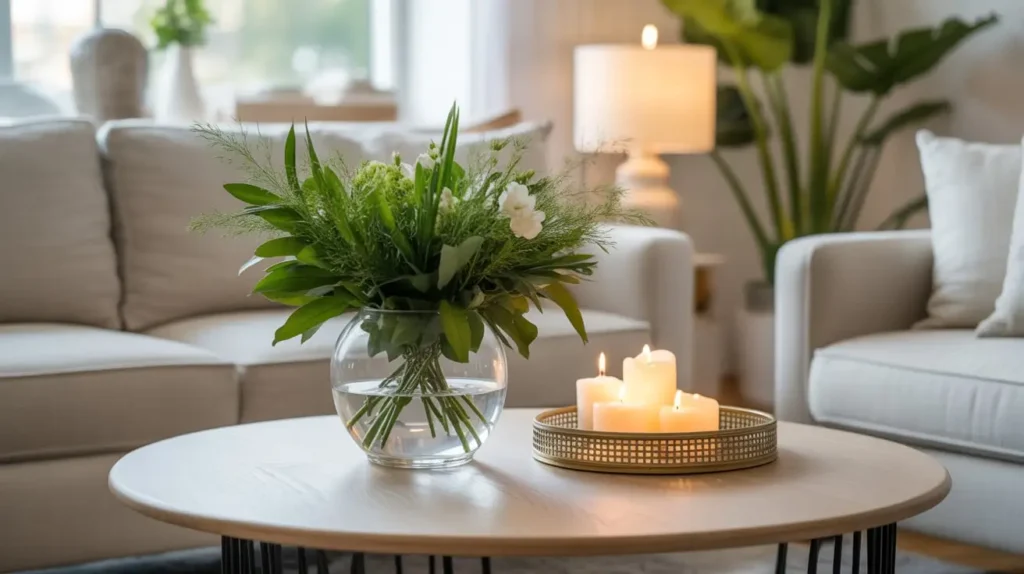 Nothing breathes life into a space quite like fresh flowers or greenery. A botanical arrangement, whether it’s a lush bouquet or a few simple stems, adds an organic, dynamic element to your coffee table. It introduces color, texture, and a touch of nature that can soften the hard edges of a modern living room.