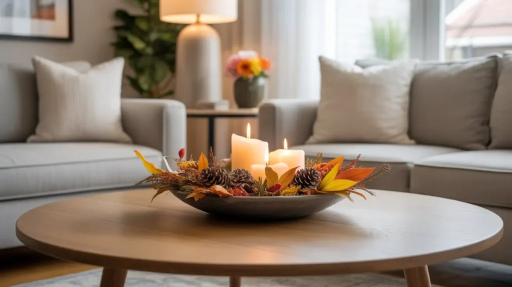 A large, shallow bowl is perfect for a round coffee table. It mirrors the table’s shape and provides a self-contained space for your seasonal displays. It’s the easiest way to keep your decor feeling fresh and relevant all year long.