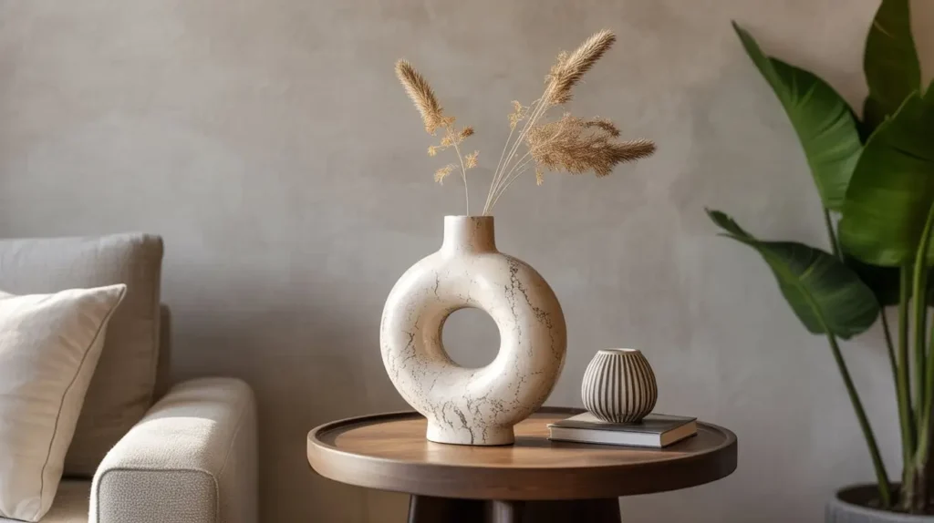 If you’re a minimalist at heart or you just want one “wow” piece, this is your move. This idea is about letting a single, dramatic object do all the talking. Forget clutter; we’re going for pure, unadulterated artistry. The side table becomes a pedestal for a piece of sculpture, which, in this case, happens to be a vase.