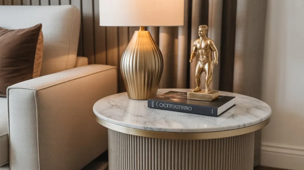 - Soften the Edges: Marble and metal can feel a bit cold and hard on their own. Add a soft element to balance them out. A stack of books, a plant with soft leaves, or a candle can add the necessary warmth and texture to complete the look.