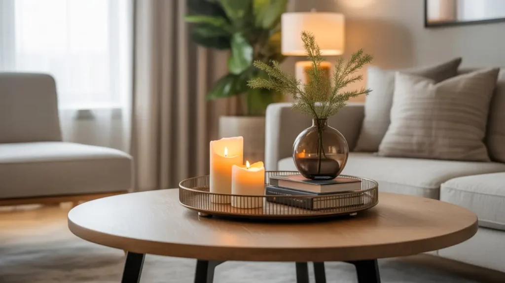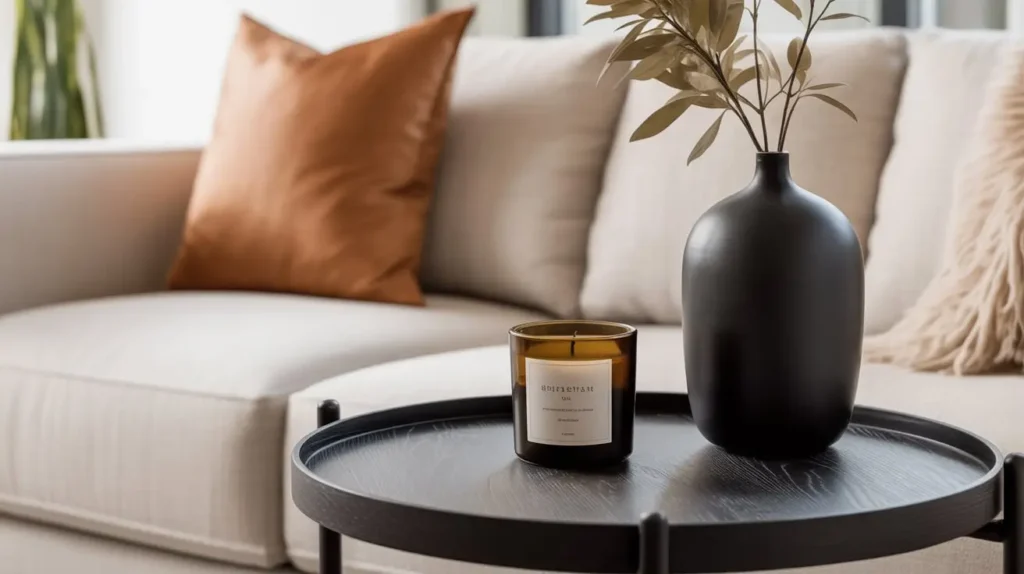 This is one of the most sensory side table decor ideas for your living room. It’s not just visual; it’s about the scent and the warm light. It’s perfect for the side table next to your favorite comfy armchair, creating the ultimate relaxation zone.