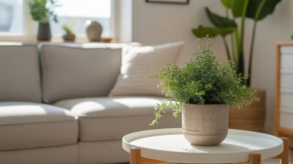 Feeling like your living room is a bit… lifeless? The quickest, easiest, and healthiest fix is to add a plant. Dedicating your side table to a splash of green instantly brings life, color, and texture into the space. It’s a biophilic design trick that makes any room feel fresher and more vibrant.