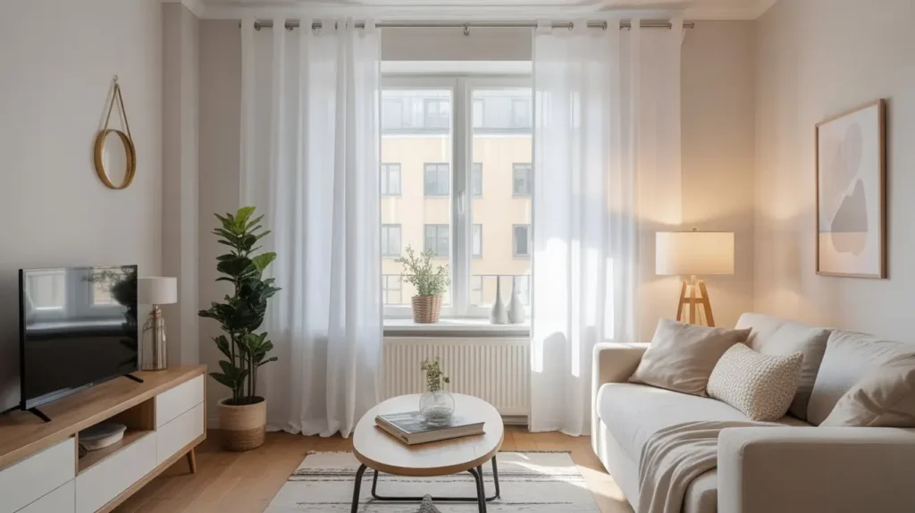 - Go for Sheer or Light-Colored Fabrics: Unless you need blackout curtains for sleeping, opt for light and airy fabrics like linen, cotton, or sheer voile. These will allow light to filter through even when they’re closed, keeping the room bright. Stick to light colors like white, cream, or light gray.