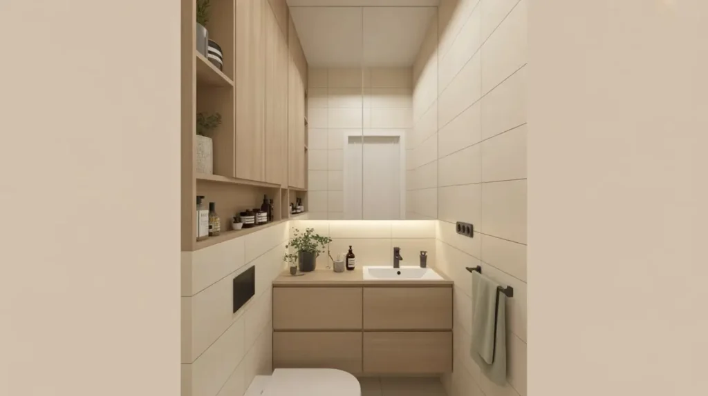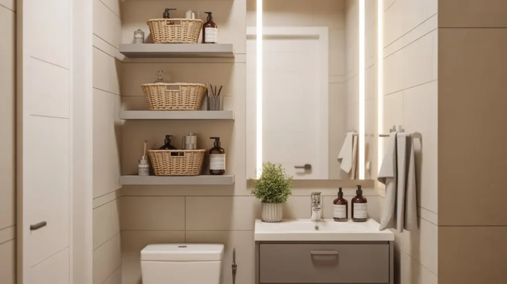 Floor space is precious. We established that. So, where does all your stuff go? You have to go vertical. Wall-mounted storage cabinets utilize the “dead space” that usually sits empty above the toilet or next to the mirror.