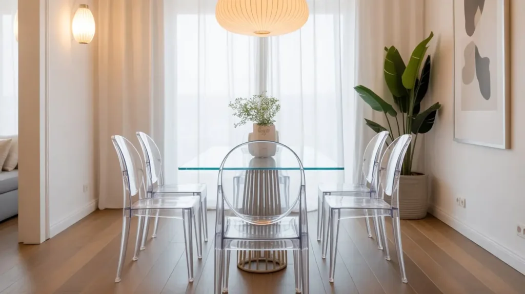 Last but certainly not least, let’s talk about the magic of “ghost” furniture. Transparent furniture, typically made from acrylic or lucite, is an incredible tool for small spaces because it has almost zero visual weight.