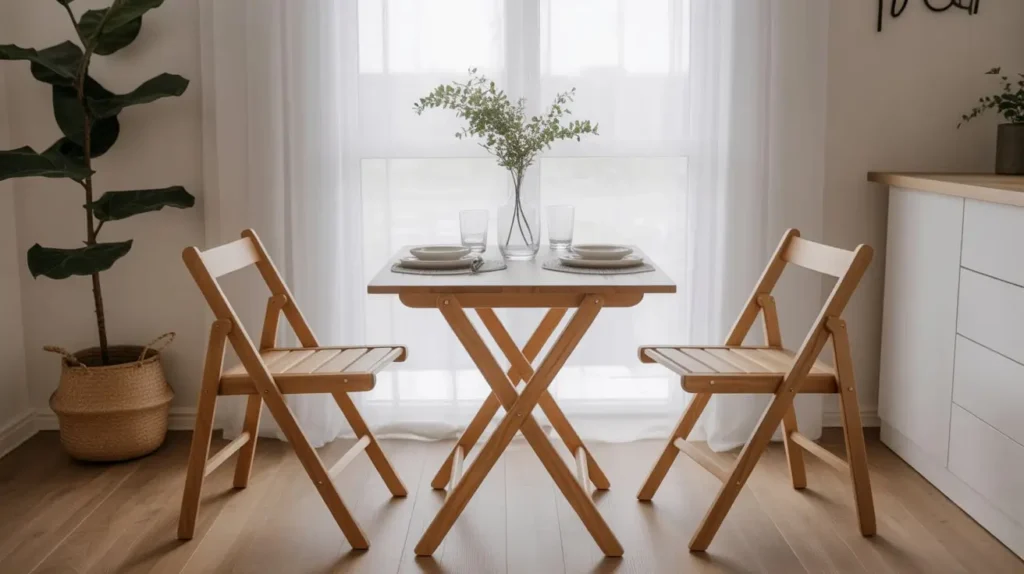 I’m not talking about those wobbly card tables from your childhood. Modern foldable tables are sleek, sturdy, and incredibly clever. They can go from a slim console table against the wall—perfect for holding a lamp and your keys—to a cozy two-person breakfast spot, and then expand to a full four- or six-seater when you have guests. It’s like the Swiss Army knife of furniture.