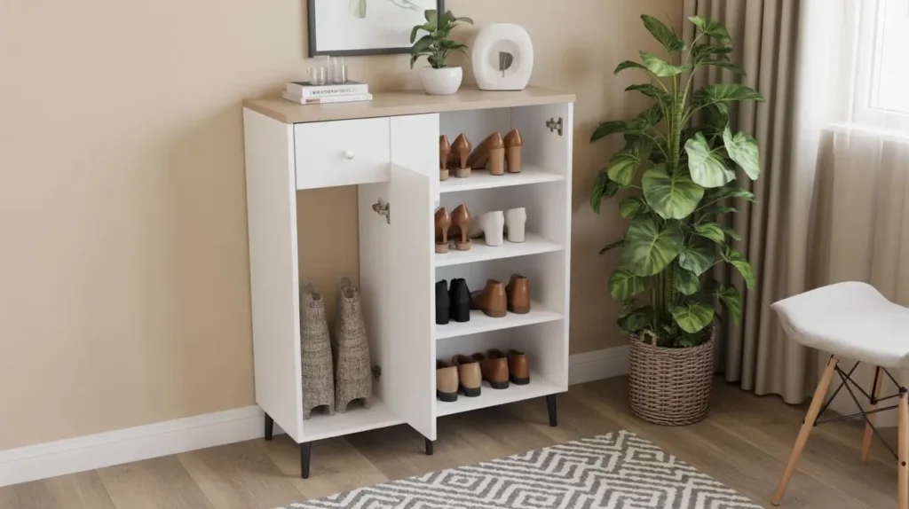 The tilt-out design keeps your shoes completely hidden, instantly eliminating the visual clutter of a messy shoe pile. Most models also have a flat top surface, which gives you a bonus landing strip for your keys and mail. It’s a shoe rack and a console table all in one.