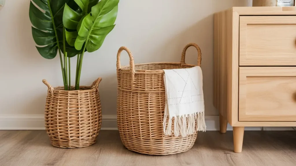 Look for a basket that is sturdy and has a wide mouth for easy access. A basket with handles is a plus, as it makes it easy to move for cleaning. Size matters—you want something substantial enough to hold your stuff without looking comically oversized for the space.
