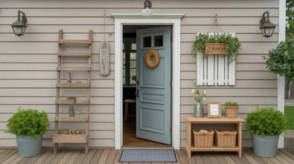 Modern farmhouse is all about that cozy, rustic-meets-refined vibe. You can absolutely scale this look down for a small entryway. It’s about texture, warmth, and a sense of lived-in comfort.