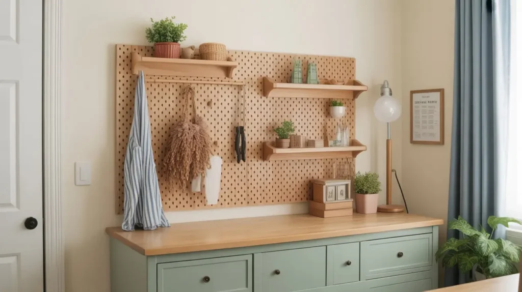 You can paint the peg rail the same color as your wall for a seamless, built-in look, or use a contrasting wood or color to make it a feature. It’s the most flexible and space-saving solution on this list, turning an entire wall into a dynamic, multi-functional storage and display zone. It’s a testament to the idea that the most practical things can also be the most beautiful.