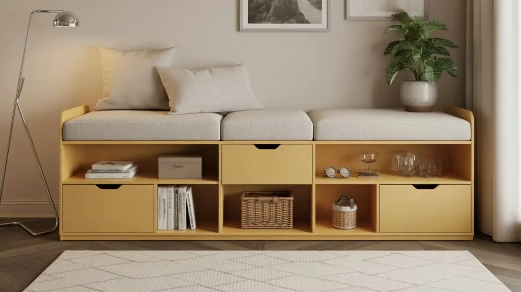 This combination of seating, storage, and style creates a complete, functional entryway “moment” in a very compact footprint. It’s inviting and incredibly useful—the perfect duo.